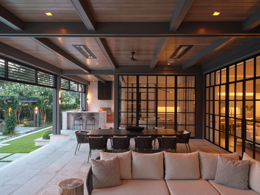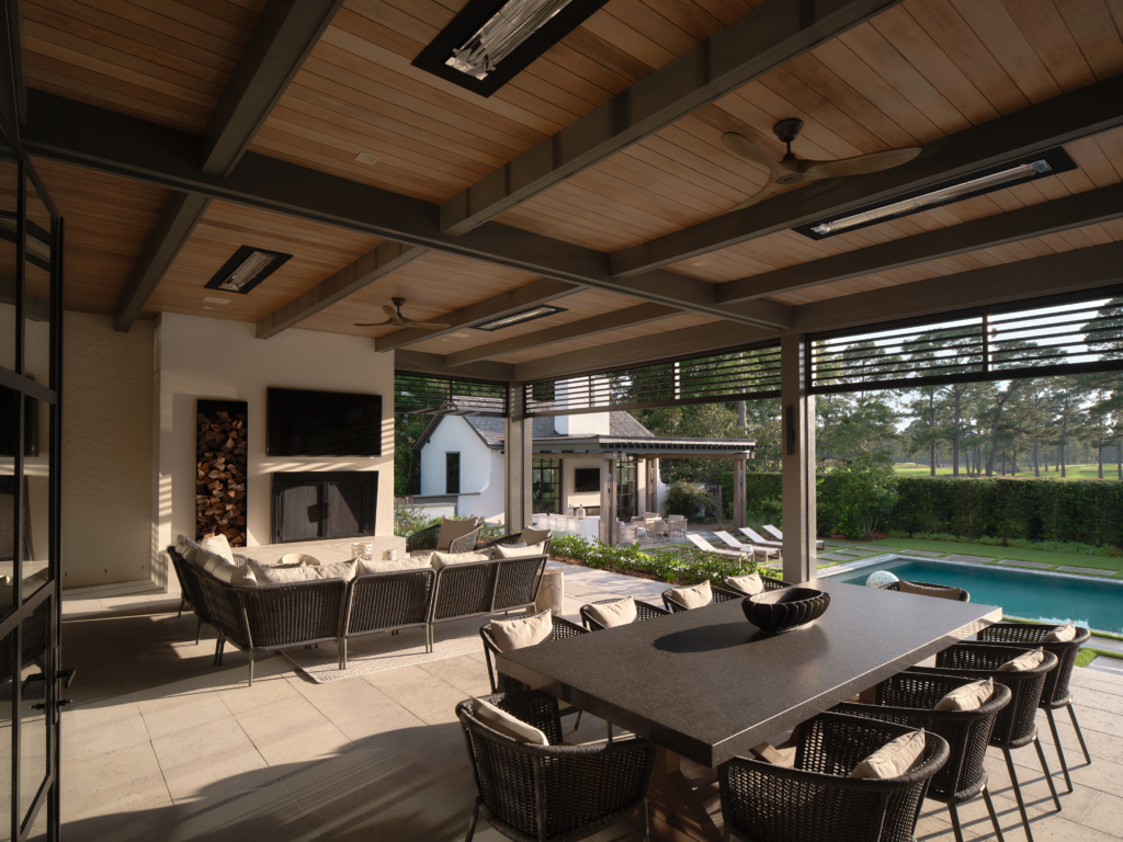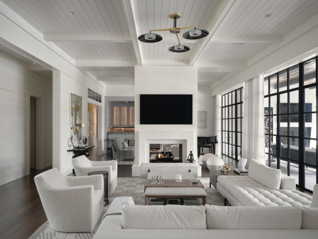 Outside, the redesign extends the home into a large outdoor living area with a fireplace, expanded outdoor kitchen, thoughtfully planned terraces, and a pool with cabana—perfect for both relaxation and entertaining year-round. Additional improvements, including a more functional garage and a dedicated home fitness area, complete a home that’s as practical as it is inviting.