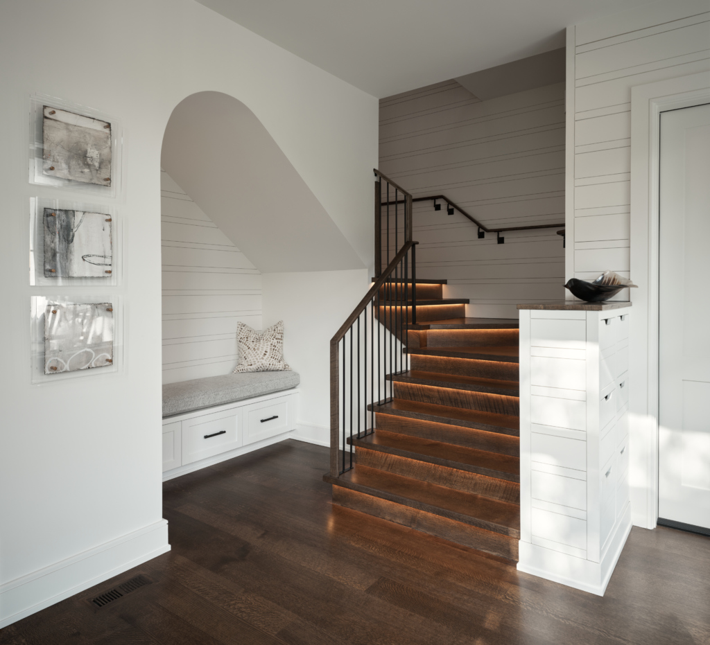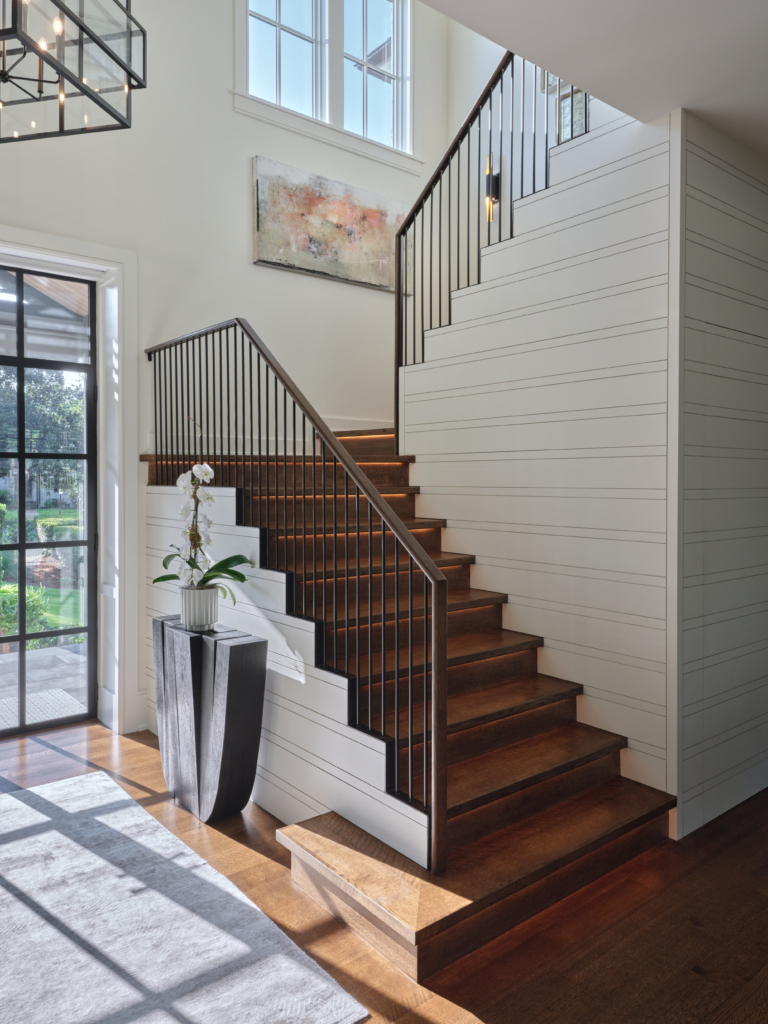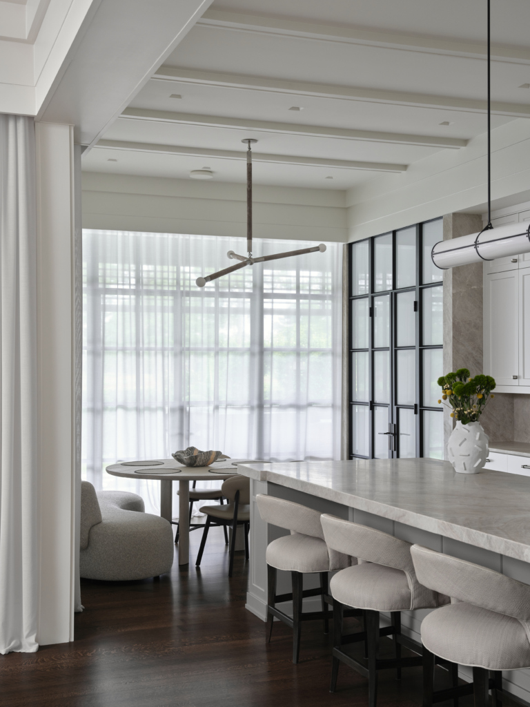 The main level now features an open kitchen, dining, and living area filled with natural light, that connects seamlessly with the new outdoor spaces. Additionally, updated interior finishes and crisp, modern detailing present a clean, contemporary aesthetic throughout the home. The master bathroom was fully remodeled to offer a spa-like retreat, tailored to the clients’ lifestyle.