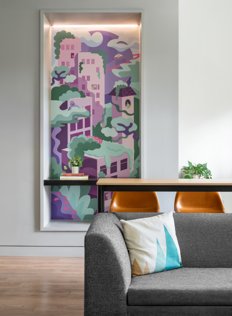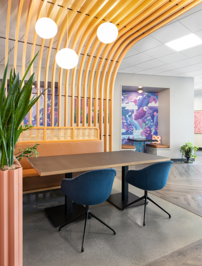 Custom graphics, designed by the agency’s own creatives, infuse the space with energy and personality, transforming the workplace into an extension of the studio’s culture. Developed through 3North’s Intangible Qualities (IQ) process, the project pairs a refined architectural framework with expressive interiors, resulting in a space that supports the work and reflects the people behind it.