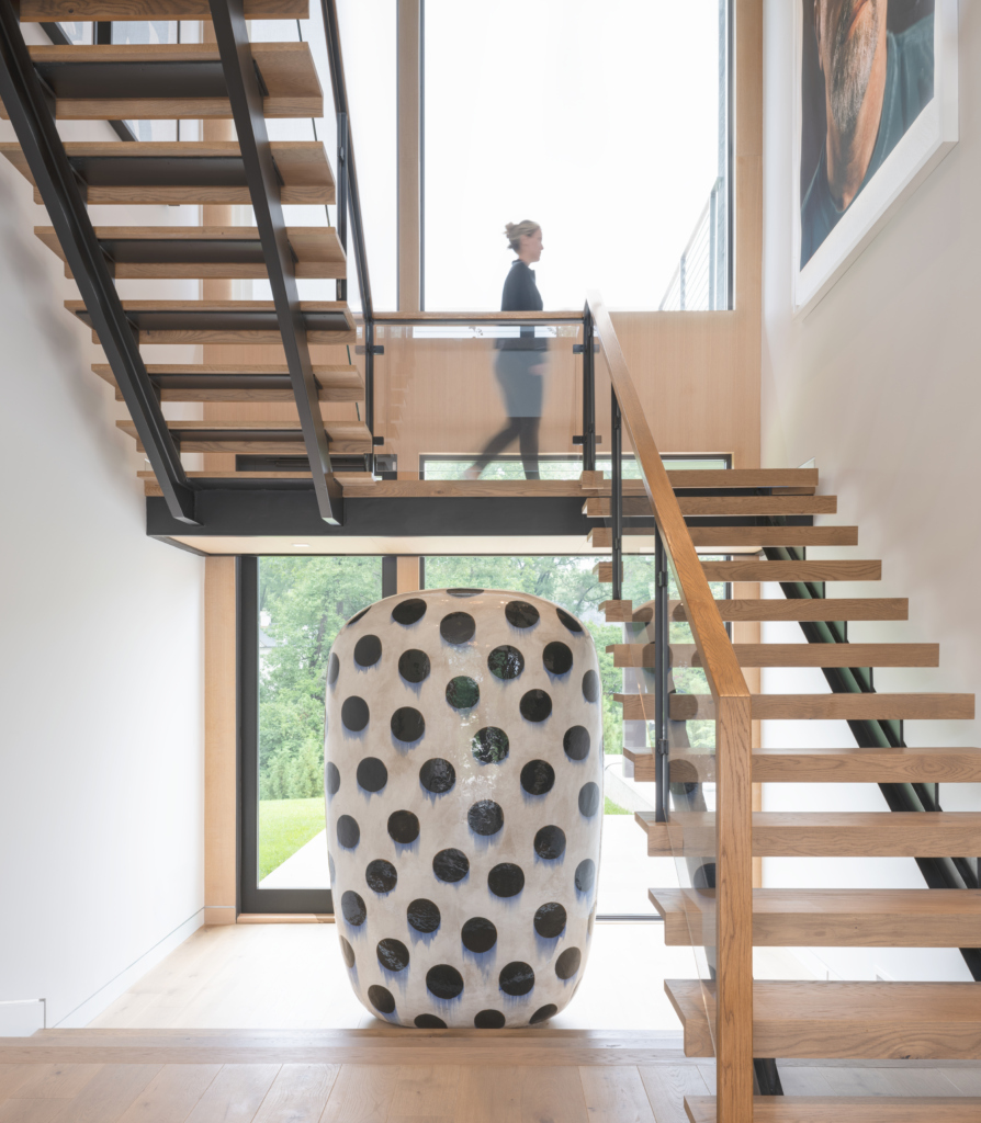 Beyond its striking modern aesthetic, the residence is a study in precision craft. Unlike traditional homes that conceal joints with trim and molding, the deliberate modern detailing here requires impeccable craftsmanship—every edge, intersection, and connection resolved with exacting care so that nothing appears accidental. The result is a contemporary home of understated richness, one that celebrates simple forms, honest materials, and thoughtful composition.